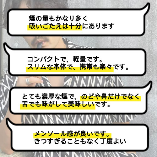 なんでも、吸いごたえや満足感は“煙の濃密さ”が重要らしい。
