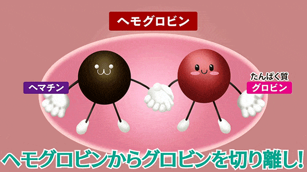 最近話題の「ヘマチン」ですが、ヘマチンは血液に含まれるヘモグロビンを分解するとできる成分。