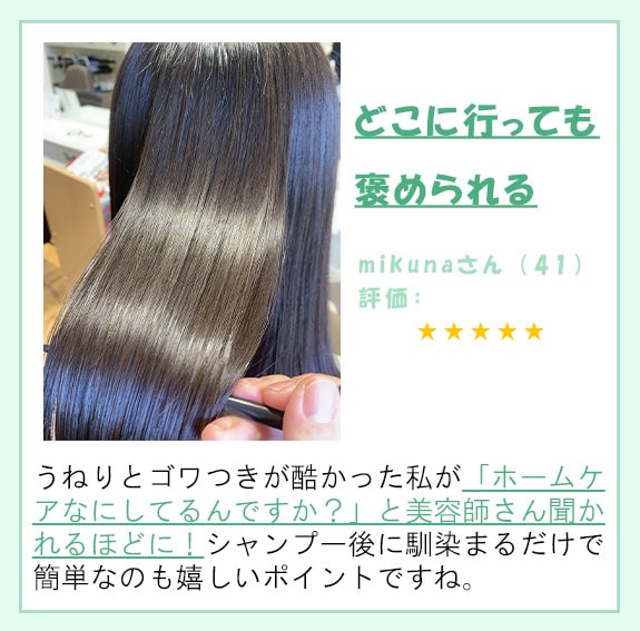 毎朝のスタイリング時間も短縮され楽になりましたし、なにより髪がキレイだと気分が最高です(笑)